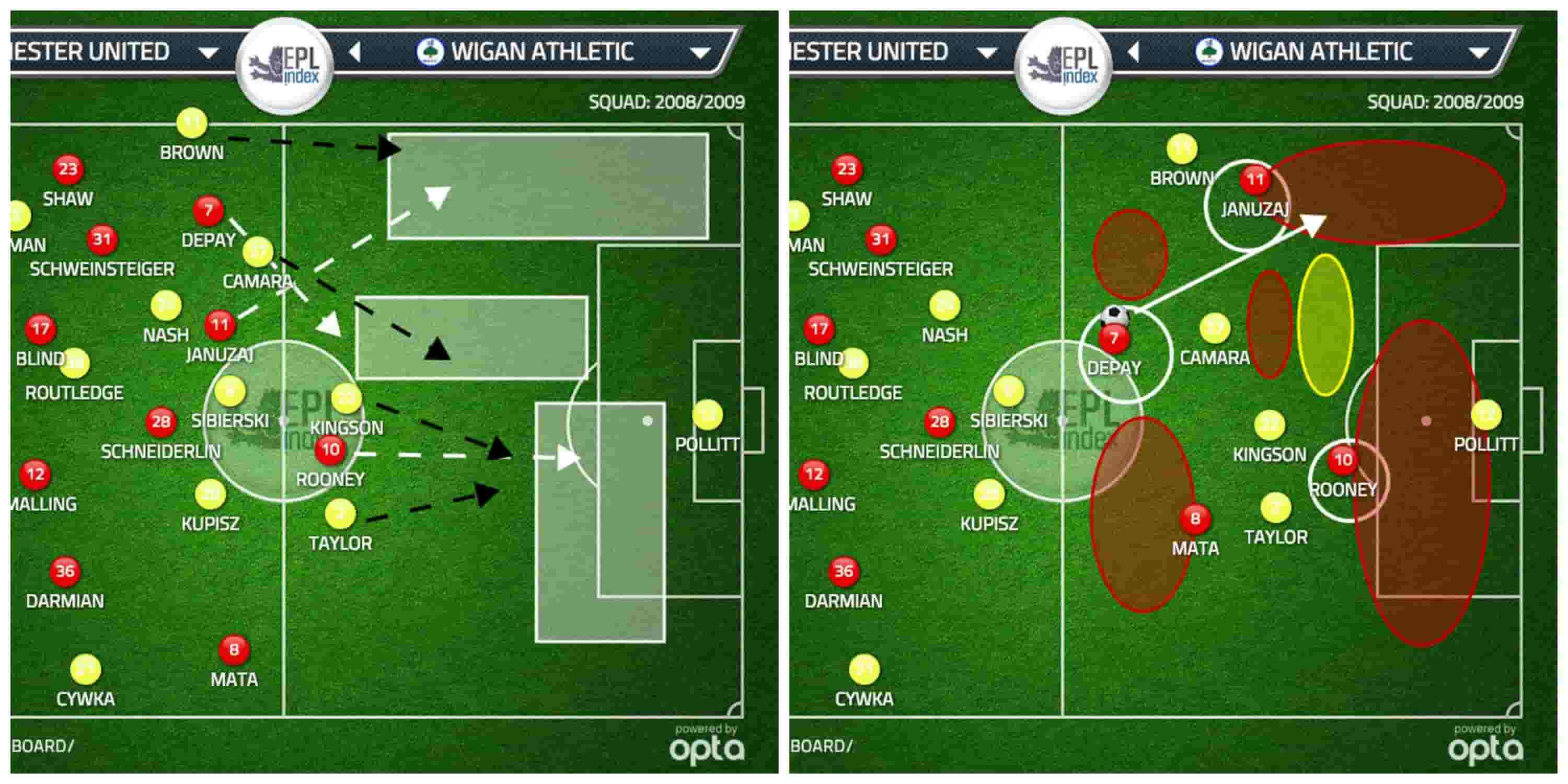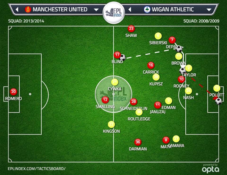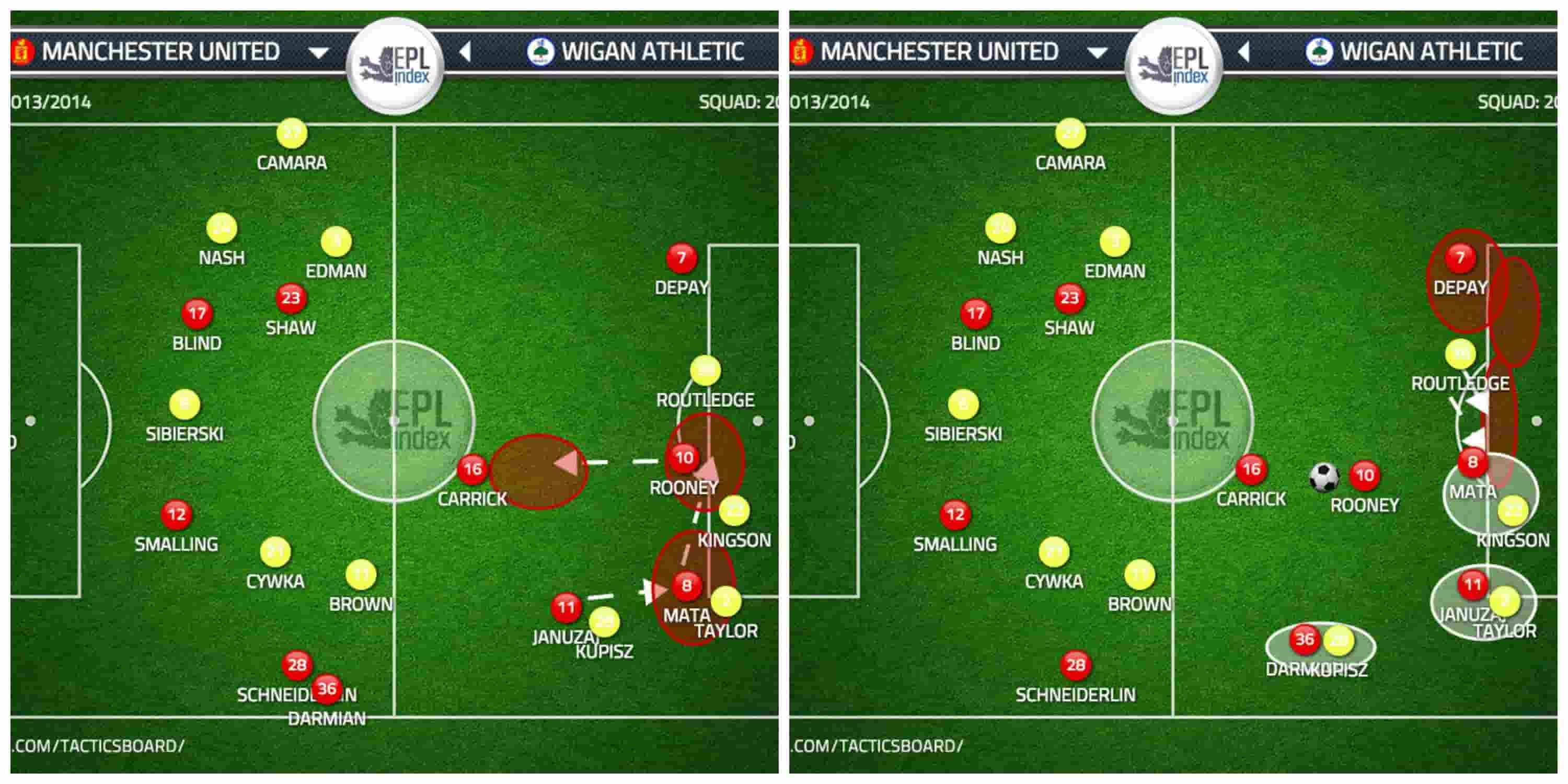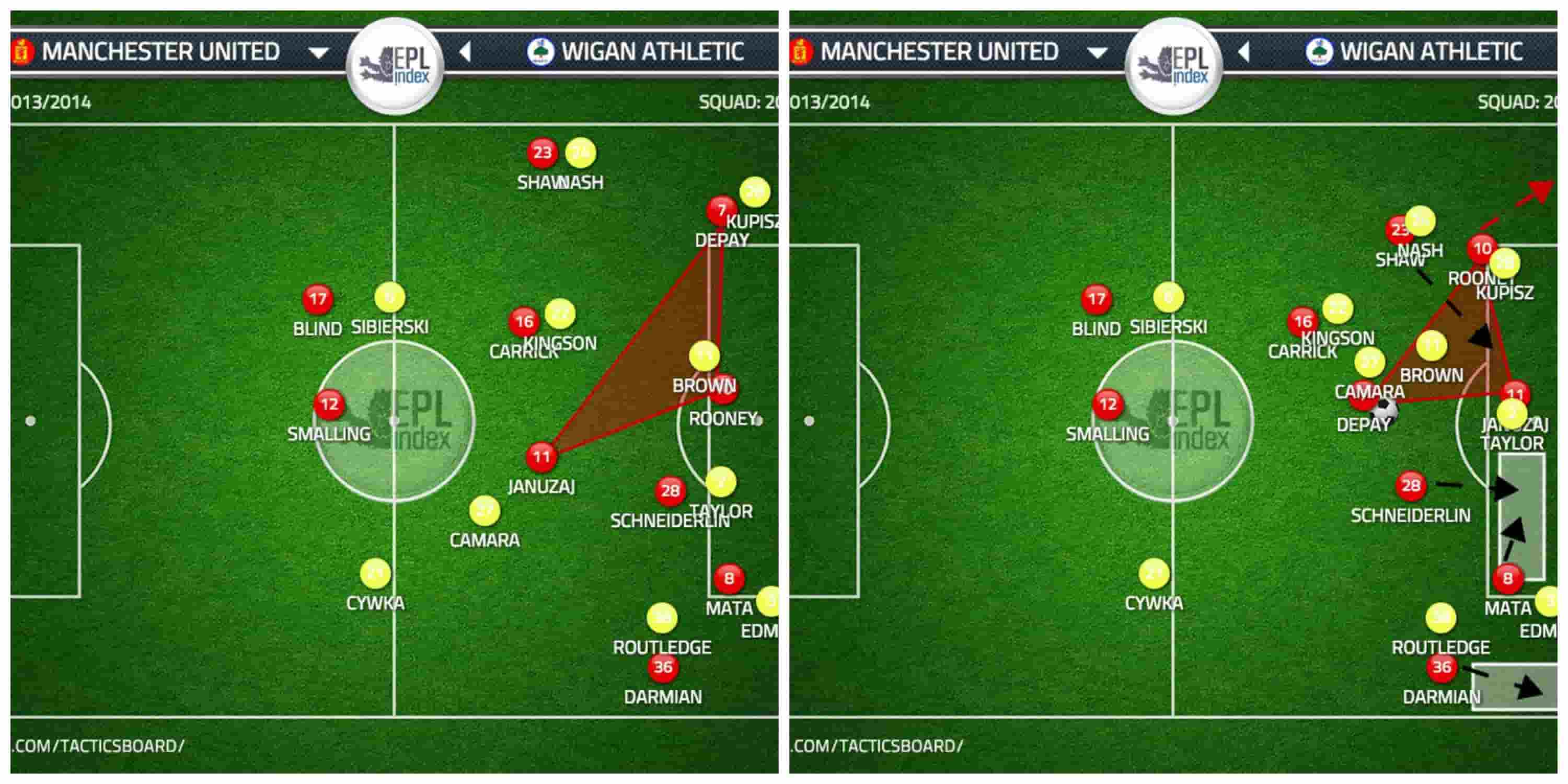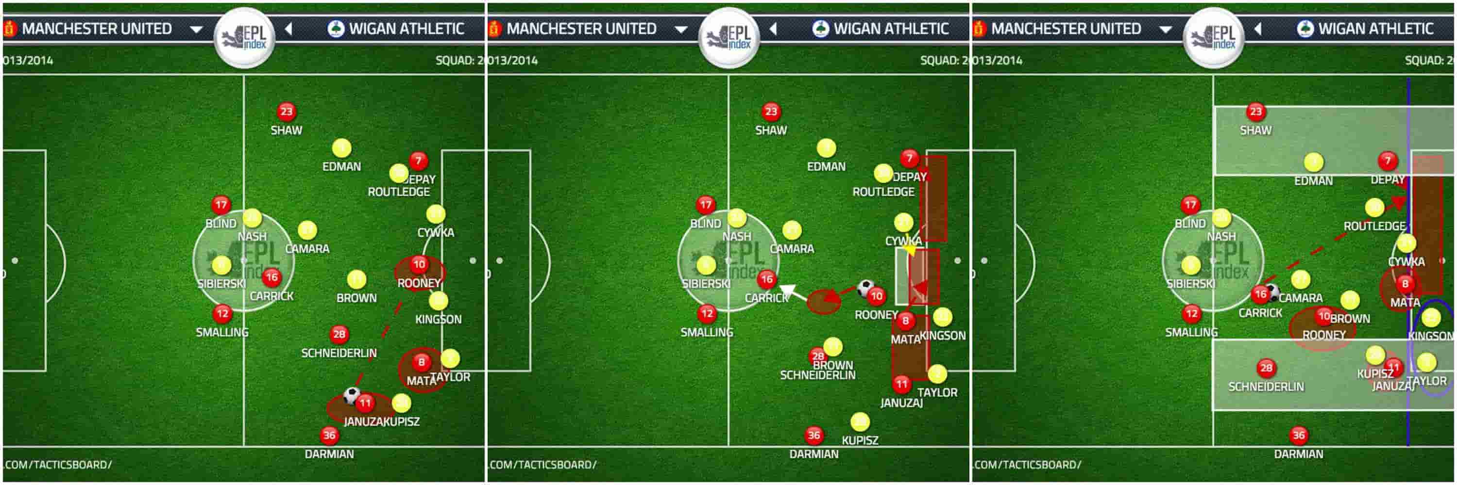 Another beautiful moment appeared in the game during a half-break opportunity from United, with Januzaj and Rooney linking up in a similar fashion to the Welbeck & Mata run mentioned in the previous article.